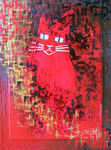 2015Uit oude schetsen van mijn oude overleden witte kater, details tot een geheel in een diagonaal landschap, zee en lucht.