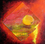 2013Warm landschap, warm, gescheurde lagen, niet vlak, rood en geel, uit oud werk op resten van laminaat.